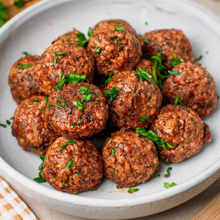 There is no question that meatballs deserve a permanent spot in everyone’s cookbook, but only if they actually deliver. While I enjoy lentil, bean, or tofu versions from time to time, they rarely nail that dense, meaty bite. This one does and works every single time.