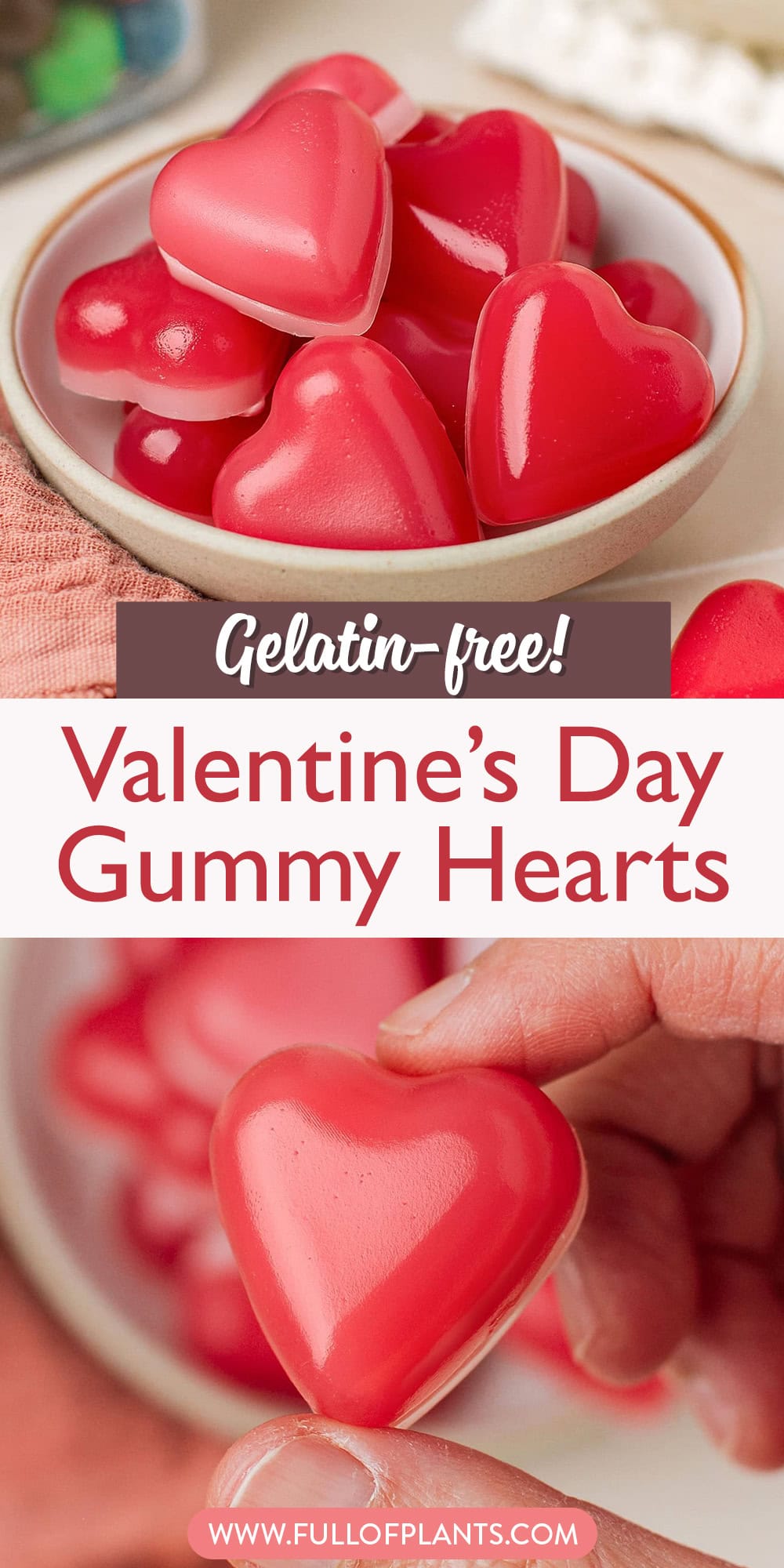 Now here is a quick heads-up: since these contain no gelatin and much less sugar than regular gummies, they cannot be stored as long (about 2 days in an airtight container). After that, they tend to harden. So, if you plan to make these for (or with) your valentine, I would suggest making them the day you plan to enjoy them for the best texture.