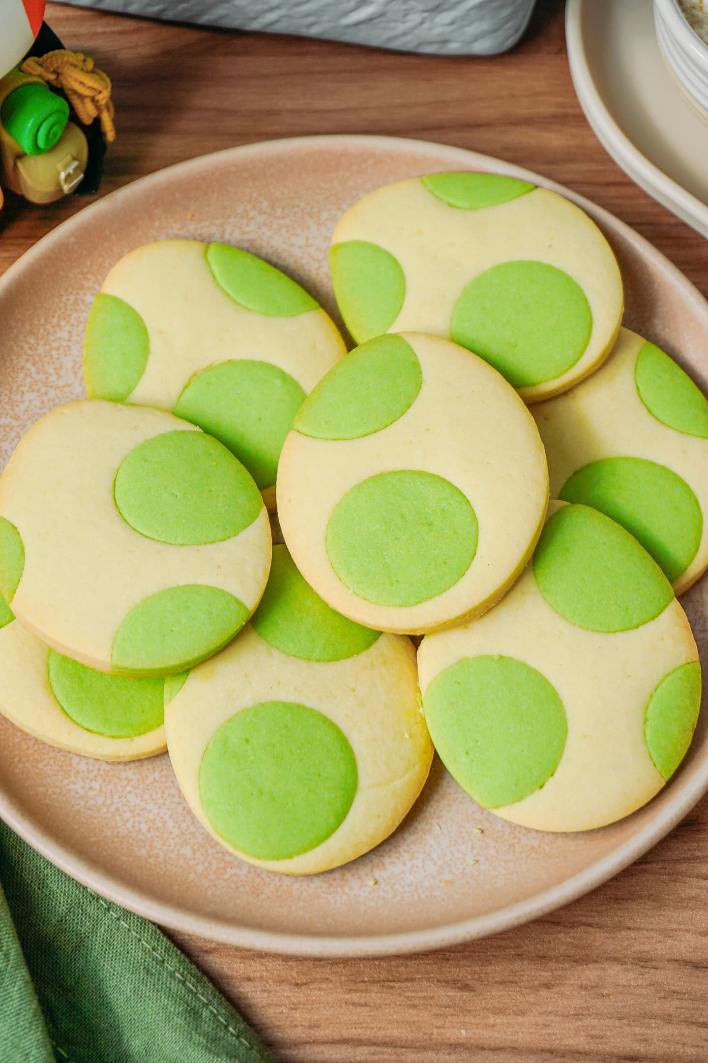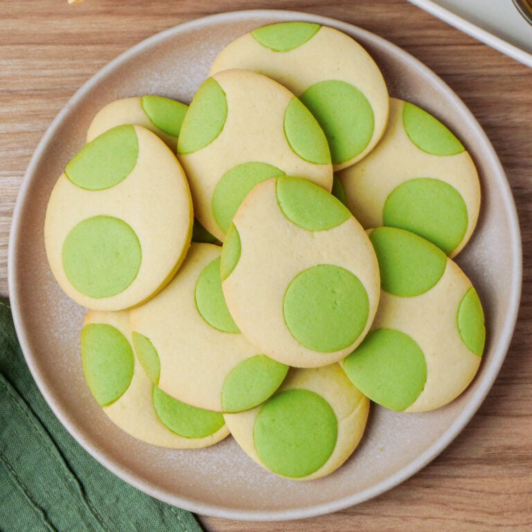 These green-dotted cookies are inspired by Pillsbury’s Yoshi Egg Sugar Cookies. They are buttery, infused with vanilla, and so fun to make! Here’s why you’ll love them: