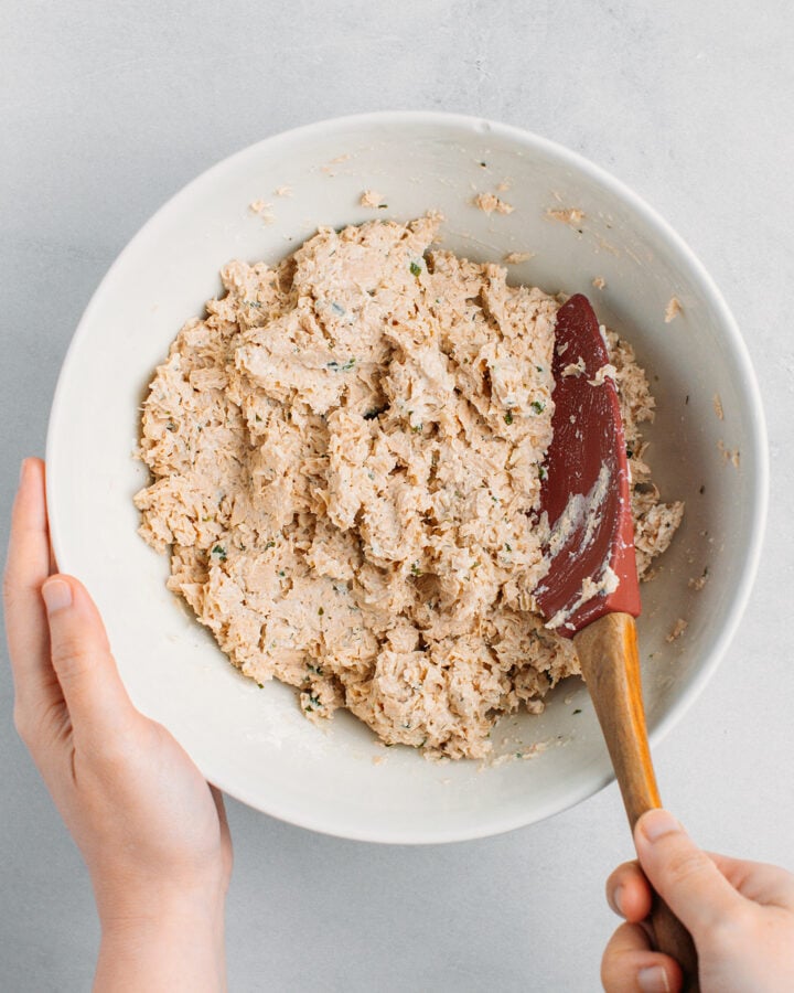 A few tablespoons of all-purpose flour help absorb some of the moisture and prevent the “fish” mixture from crumbling during cooking. Although I haven’t tried it yet, I think a 1:1 gluten-free flour blend should work.